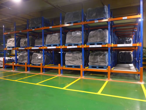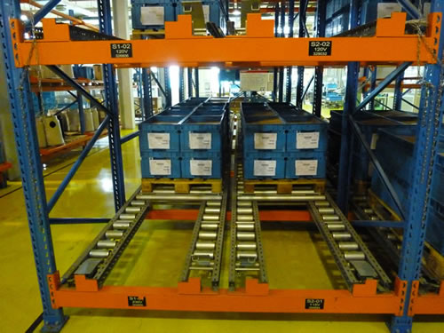 工作原理 重力式貨架又叫輥道式貨架,屬于倉儲貨架中的托盤類存儲貨架。重力式貨架是橫梁式貨架衍生品之一,貨架結(jié)構(gòu)與橫梁式貨架相似,只是在橫梁上安上滾筒式軌道,軌道呈3-5°傾斜。托盤貨物用叉車搬運(yùn)至貨架進(jìn)貨口,利用自重,托盤從進(jìn)口自動滑行至另一端的取貨口。重力式貨架屬于先進(jìn)先出的存儲方式。 貨架特點 1、貨物由高的一端存入,滑至低端,從低端取出。貨物滑動過程中,滑道上設(shè)置有阻尼器,控制貨物滑行速度保持在安全范圍內(nèi);莱鲐浺欢嗽O(shè)置有分離器,搬運(yùn)機(jī)械可順利取出第一板位置的貨物。 2、貨物遵循先進(jìn)先出順序。貨架具有存儲密度高,且具有柔性配合功能。 3、適用于以托盤為載體的存儲作業(yè),貨物堆棧整齊,為大件重物的存儲提供了較好的解決方案,倉儲空間利用率在75%以上,而且只需要一個進(jìn)出貨通道; 4、重力式貨架非常環(huán)保,全部采用無動力形式,無能耗,噪音低,安全可靠,可滿負(fù)荷運(yùn)作。 |