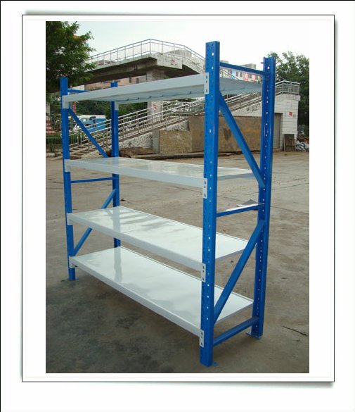 | 中型貨架結(jié)構(gòu) 1、貨架立柱是由冷軋鋼板經(jīng)專用冷彎成型機(jī)組滾軋成型,立柱正面沖雙排孔,孔距離以50mm距離沿直線排列,立柱孔用來掛接橫梁之用;兩根立柱相對(duì),中間有橫向連接管與傾斜連接管將兩根立柱組裝成貨架 2、貨架橫梁采用“P”型管材,俗稱“階梯梁”,階梯的高度與層板的高度相匹配。 3、貨架鋼層板采有冷軋鋼板按所需尺寸四邊折彎成型。 4、橫梁與立柱片掛接組裝成框架,*后鋪設(shè)鋼層板,至此一組完整的中型貨架成型。 5、貨架各部件加工好成型之后全部經(jīng)打磨、酸洗、磷化、全自動(dòng)粉末靜電噴涂、烘干等工藝處理后組裝成品。生產(chǎn)出的貨架成品表面光潔、美觀;貨架層可上下依50mm節(jié)距任意調(diào)節(jié),拆裝方便。